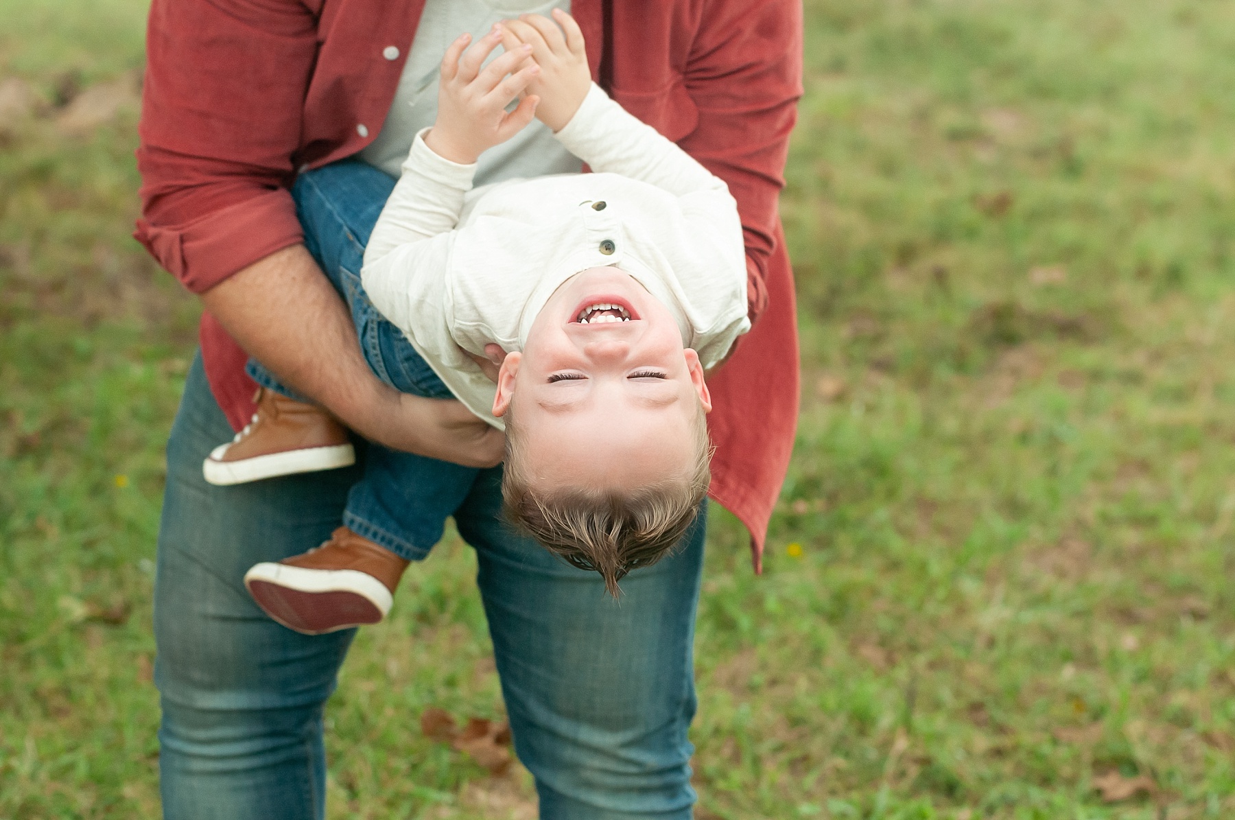 There was a slight breeze blowing, but the warmth of the sun still hugged our bodies. It smelled like rain was about to fall. There was a thin veil of clouds overhead creating a natural softbox for beautiful soft light. The cows lined up behind us without prompting like they knew it was time for their family portraits. India wore a gorgeous maternity dress and her hair and makeup were done perfectly. She was so kind to me and so loving to her husband and son. Trey was incredibly courteous and Lane was a doll. He had so much fun throwing rocks and sticks into the pond and being thrown in the air by daddy. It was a perfect session and I am so excited for the Jones’ to welcome their baby girl in December.
