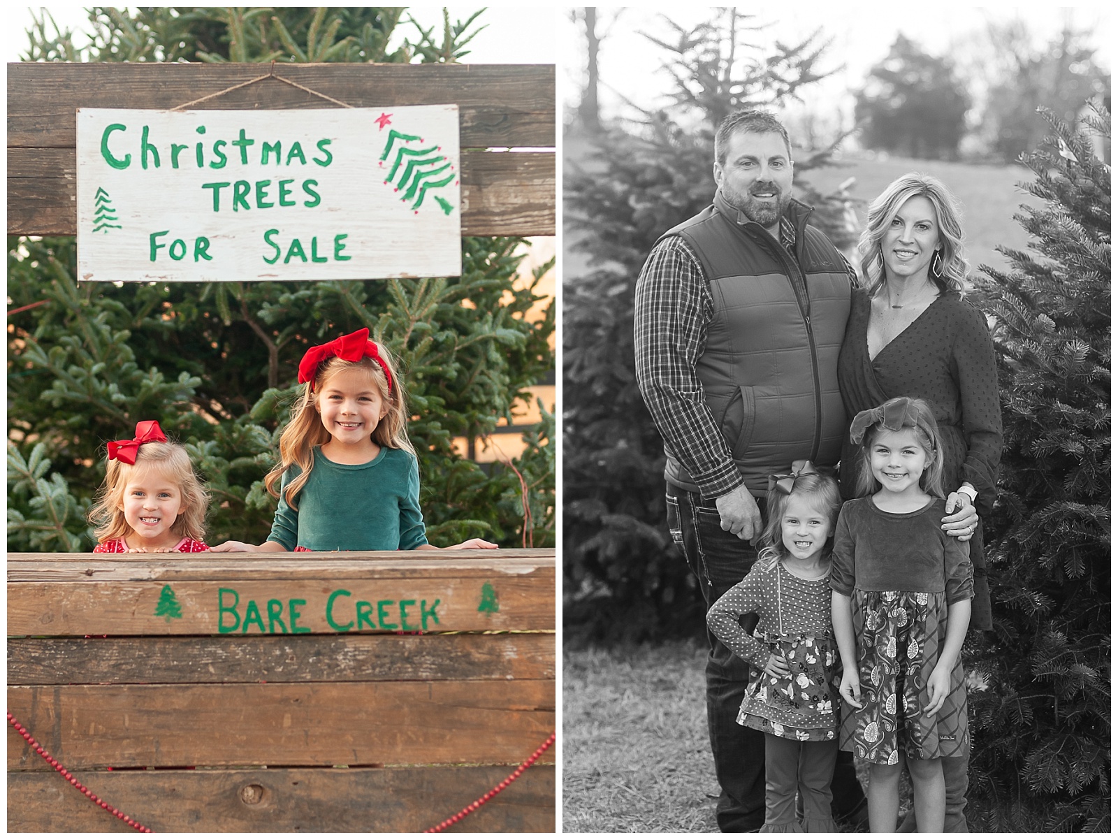 This past weekend I was able to take photos for this precious family. We met at Bare Creek Farm on a beautiful winter day. The sun was setting, but it was surprisingly not too cold. The girls were so excited. They ran to the Tree stand sign and pretended to be selling Christmas trees. We had so much fun, and the girls were just so sweet and cute.